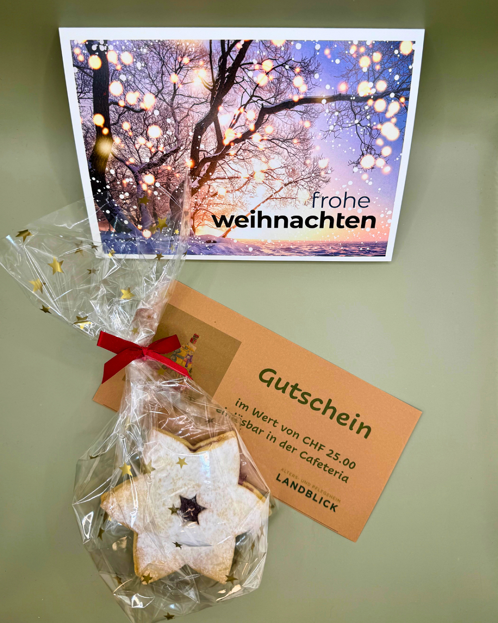 Als kleines Weihnachtsgeschenk erhalten unsere Bewohnenden einen hausgemachten Spitzstern, eine Karte sowie einen Gutschein für Konsumationen in unseren Cafeterias.